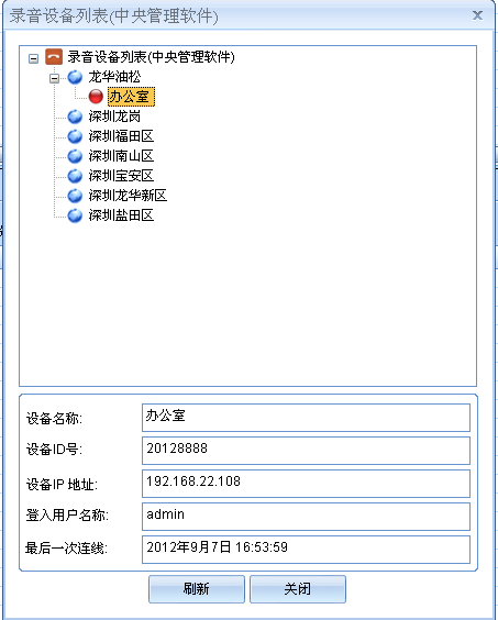 该列表显示当前同一个内网里面正在运行的录音设备,可以点击列表,快速填写设备信息到左边的信息栏位,进行注册操作: